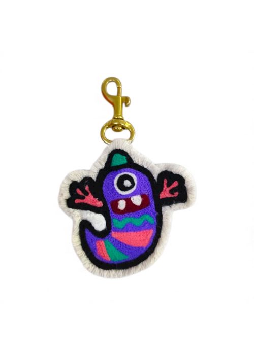 Our fringed canvas chainstitch embroidered charms are made using an oldschool hand operated chainstitch embroidery machine technique. Due to the hand operated machine, no two charms are perfectly identical. Hang the charms on the loop by themselves on the handle or stack them one on top of the other. There is no limit on where you can hang these charms, they could also be key chains and much more.