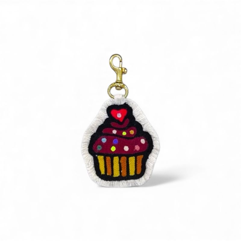 Our fringed canvas chainstitch embroidered charms are made using an oldschool hand operated chainstitch embroidery machine technique. Due to the hand operated machine, no two charms are perfectly identical. Hang the charms on the loop by themselves on the handle or stack them one on top of the other. There is no limit on where you can hang these charms, they could also be key chains and much more.