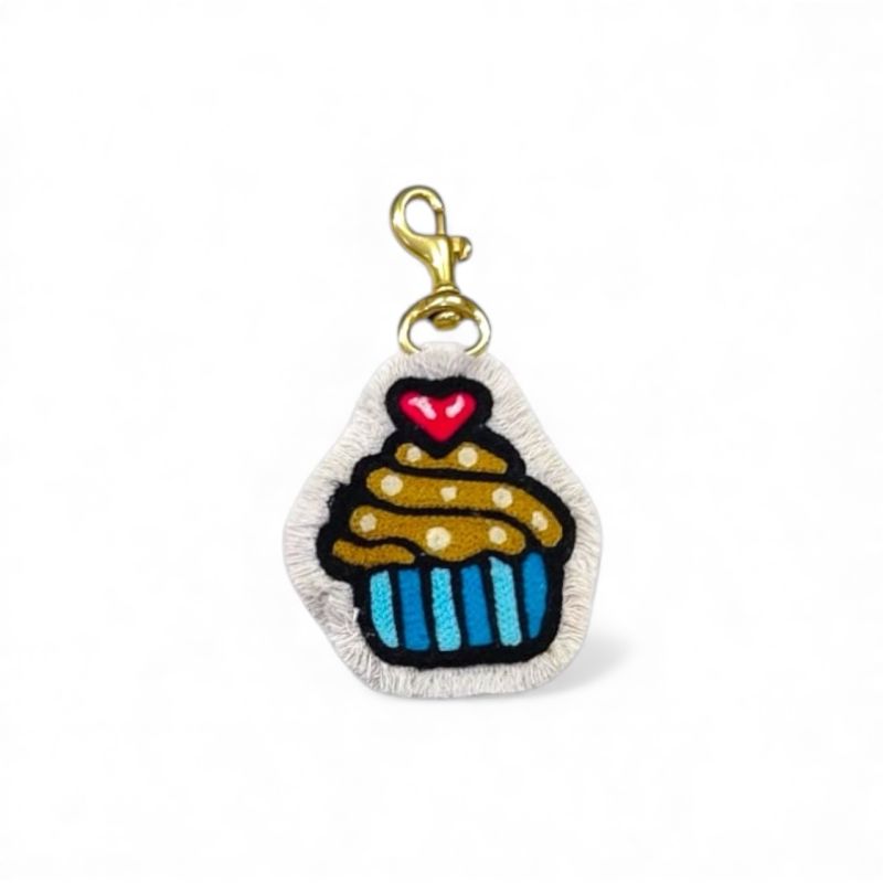 Our fringed canvas chainstitch embroidered charms are made using an oldschool hand operated chainstitch embroidery machine technique. Due to the hand operated machine, no two charms are perfectly identical. Hang the charms on the loop by themselves on the handle or stack them one on top of the other. There is no limit on where you can hang these charms, they could also be key chains and much more.